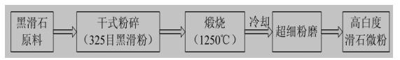 优点是工艺过程简单,加工费用低,但经过超细粉碎和分级后此工艺最终获得的滑石产品白度为 85%左右,并未达到煅烧后白度达到 95%的目的。