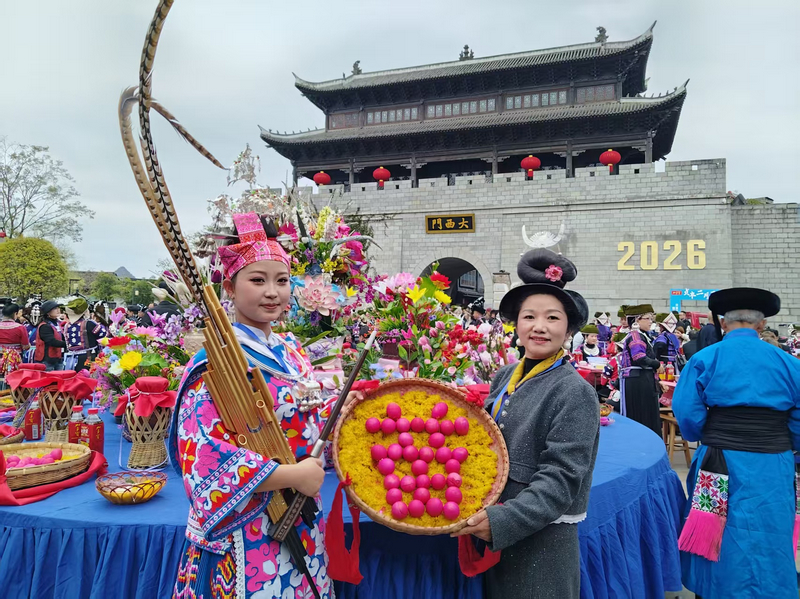 3月20日至21日,以“牵手走苗家,越走心越亲”为主题的贵州·贞丰2026年“二月二”苗族走亲风俗文明活动举办。来自云南、四川、重庆、湖南、广西等省(区、市)的各民族同胞跨过山水,齐聚一堂,在欢欣鼓舞中欢庆佳节,一同绘就一幅“中华民族一家亲,同心共筑我国梦”的精彩画卷。